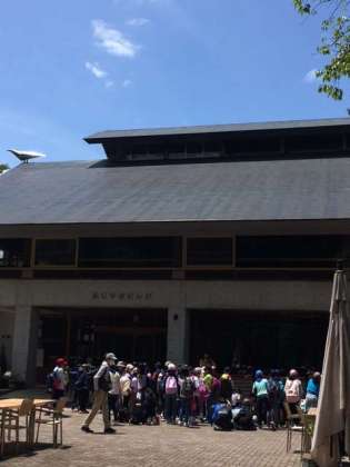 無事にふじやまビレジに到着しました。交通渋滞もなくスムーズでした。なんと言っても、この青空。本当によかったです。開室式をしています。みんな元気です。