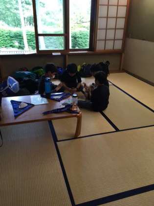 男子棟です。活動の合間の時間にカードゲームで楽しんでいます。