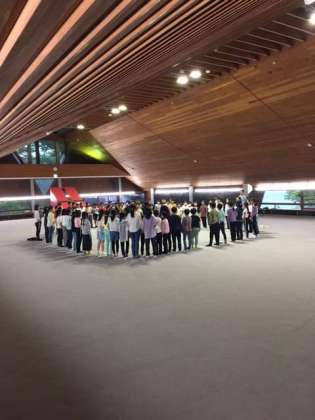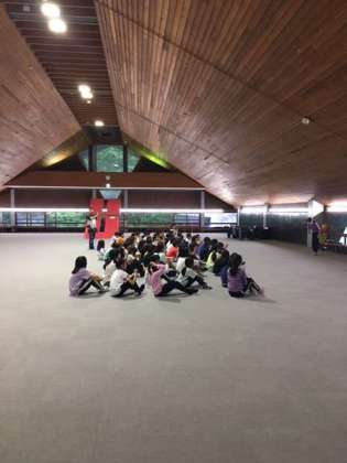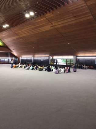 館内でレクリエーションをしています。ふじやまビレジの2階は体育館ほどの広さのある多目的室が設置されています。そこで楽しいゲームが始まりました。