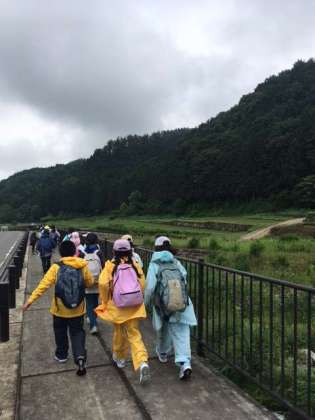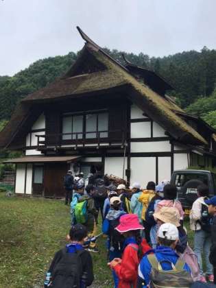 村めぐり その1 茅葺き屋根の家や田園風景を眺めて歩いています。