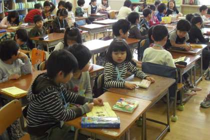 「保育園では、年長で教える立場の園児ですが、ここでは、教わる立場となり、保育園とは違う表情をしています。子どもたちにとって、楽しく、学校への期待が高くなったと思います。」と引率された先生方の感想でした。