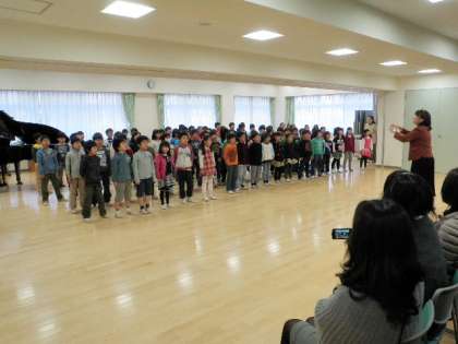 1年間でできるようになったことを一人一人発表しました。発表の合間に歌「すてきな友だち」「Y&I」「この道を行こう」も披露しました。大きな口を開け、体を揺らしながら気持ちよく歌う子どもたち。見ていてこちらも気持ちよくなりました。家族への感謝の言葉の後に、3年生で楽しみなことを発表し、会を終えました。子どもたちは、1年間でしっかり成長し、3年生を楽しみにしているのがよく分かりました。たくさんの保護者の皆様がご参観くださり、子どもたちも大喜びでした。ありがとうございました。