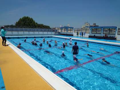 今日から夏季水泳が始まりました。今日は、2年生と1年生の実施日でした。普段の授業よりも参加する人数が少なく、広々とプールを使うことができました。天気にも恵まれ、どちらの学年も楽しく水の中で過ごすことができました。