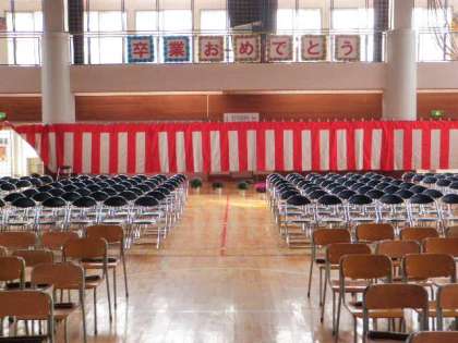 卒業式の準備が整いました。明日のご来校をお待ちしております。明日は寒くなりそうです。防寒の準備をお願いします。