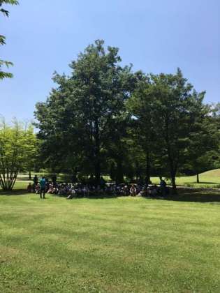 時間通りに日光だいや川公園に着きました。とても良い天気。この猛暑ですから、日差しのもとでは暑さを感じますが、木陰に入ると自然の風か涼しく感じます。みんな元気です。