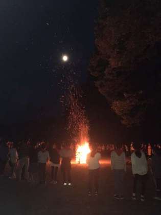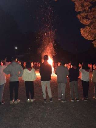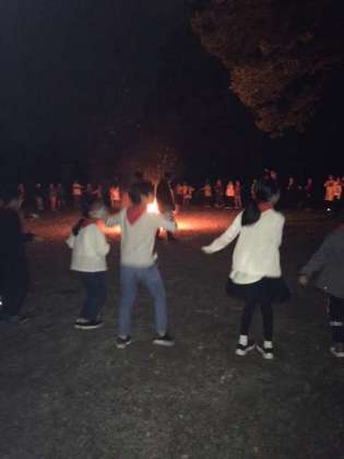 キャンプファイヤーが始まりました。ゲームにダンス。月夜の晩の楽しい思い出となりそうです。