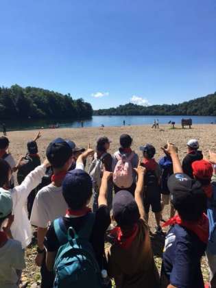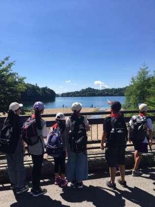 ?湯の湖に着きました。とてもきれい。子供たちの顔からその気持ちが伝わります。