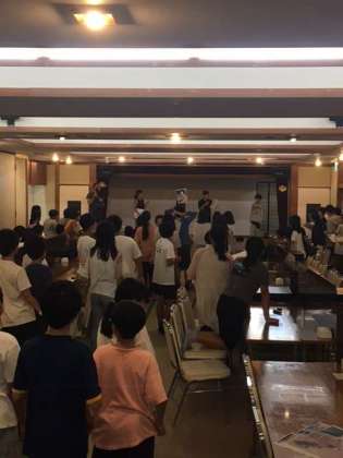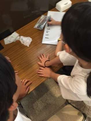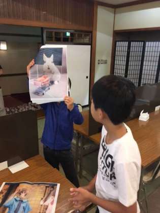 室内レクリエーションをしています。題して「大喜利」。とても大盛り上がりしているのですが、それを写真でお伝えすることが難しいので、内容はぜひお子様に聞いてください。