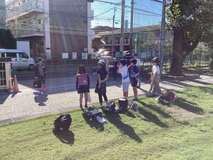 代表委員会が、あいさつで学校を明るくしたいという思いから、校門であいさつを行なっています。