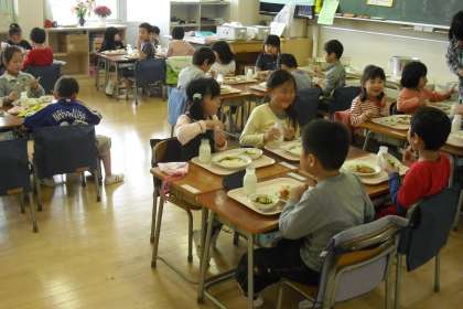 今日から1年生の給食が始まりました。始めての配ぜんも頑張りました。