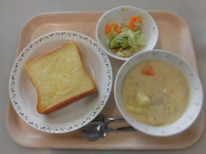 今日は図書館とのコラボメニューで、「パンどろぼう」という絵本を題材にしました。絵本の中には、おいしそうなパンがいろいろと出てきますが、給食ではシュガーバターをたっぷりぬって焼いた『シュガートースト』にしました。給食のパンも「パンどろぼう」に気に入ってもらえるでしょうか。