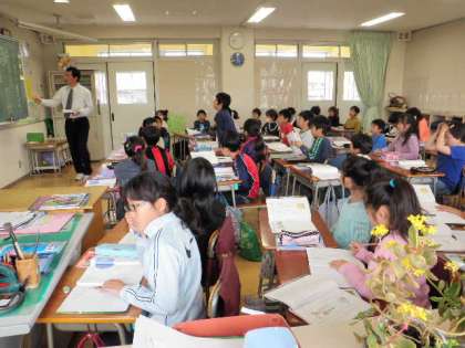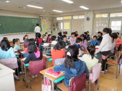 今日は「白いぼうし」の授業で、松井さんの人柄が分かるところに線を引き発表していました。大門先生は、赤堤小学習スタンダード(学習についての基本的なこと)に基づき、「名前を呼ばれたら『はい』と返事をしてから、立って発言する。」「話をする人の顔を見て聞く。」に特に力を入れて指導していました。聞き方名人が増えてきたそうです。