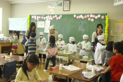 今日から1週間、1年生のお母さま方が1年生の配膳の支援をしてくださいます。お母さま方に手伝っていただきながら、子どもたちはがんばって配膳と後片付けをしました。お母さま方、ありがとうございました。