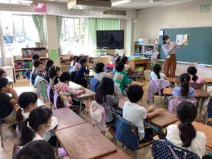 朝の時間のボランティアのお母さん方による読み聞かせです。今日はどんなお話だろうと、子どもたちは楽しみにしています。本は、読み手の方による選出です。