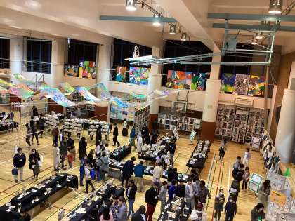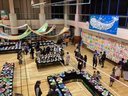 児童鑑賞では、学年や縦割り班でお互いの作品を紹介し、