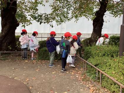 今日、生活科の学習で秋を探しに「山下公園」に行きました。きれいな色の葉っぱやどんぐりをたくさん拾いました。