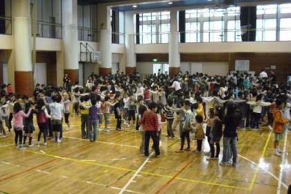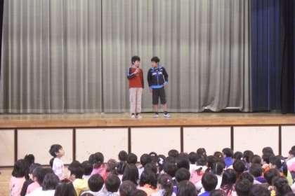 体育館で、「じゃけん列車集会」を行いました。
