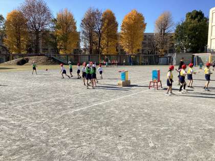 12月とはいえ、暖かな天候が続く青空のもと、学年オリエンテーリングを行いました。各クラス3名ずつの実行委員が遊びを計画し、王様ドッジボールなどで仲良く楽しみました。また、来年の音楽発表会に向けて、学年で歌を歌ったり、ジャンケン列車で親睦を深めました。
