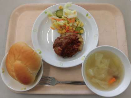 『アップルチーズハンバーグ』は、その名の通り、りんごとチーズの入ったハンバーグです。どちらも角切りにしたものを入れて存在感を出しています。りんごは加熱することで甘みが出ます。りんごの甘みとチーズの風味どちらも感じられるハンバーグです。