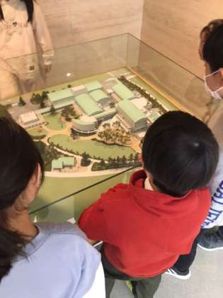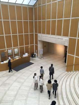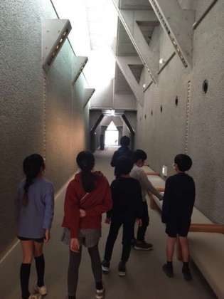 小グループに分かれ、鑑賞リーダーの皆さんに案内をしていただいています。世田谷美術館は建物そのものが作品。まずは建物を鑑賞しています。