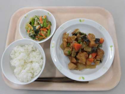 今日の煮物はちょっと一工夫して、鶏肉とじゃがいもは一度油で揚げてから、ほかの食材と煮ています。揚げることで食材のうまみが増し、味もよくしみておいしい煮物に仕上がります。