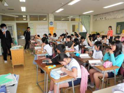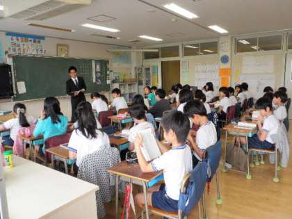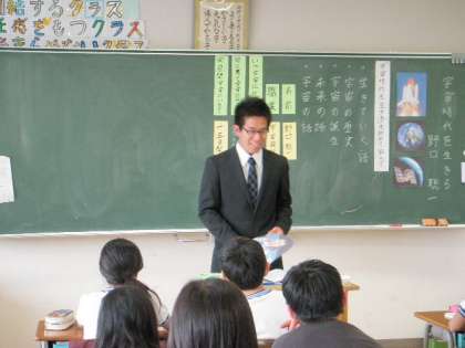 5月7日から4週間連続の特別教育実習が始まりました。今日は、国語「宇宙時代を生きる」の1時間目でした。本人は盛んに「あがっている。」と連呼していましたが、子どもたちを引き付けるため、宇宙飛行士野口さんのお面をかぶるなどの工夫をしっかりしていました。子どもたちも一生懸命先生に応えようとする様子がよく見られ、見ていてほほえましくなりました。