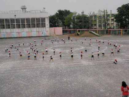 今年の団体演技は「ザ・わ・輪」です。フラフープで演技しながら、隊形を変えていきます。どんな輪の操作があるか楽しみです。