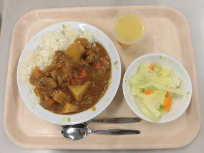 給食のゼリーはもちろん手作りですが、今日のゼリーは、よりりんごの味を感じてもらえるように、ジュースだけでなく、すりおろしたりんごも加えて作りました。
