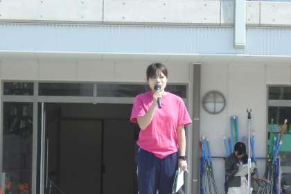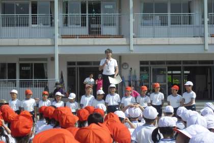 また、4年2組の阿部教諭が話をしました。ゾウの鎖の話から、一度の失敗であきらめずに努力する、強い気持ちをもってほしいと話しました。運動会ももうすぐです。この気持ちを大切にしながら練習してほしいと思います。