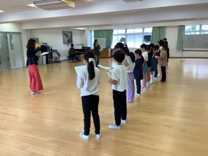 朝登校すると、合唱団の歌声が校庭や校舎に響き渡っていました。1年生は登校の足を止めて釘付けで見学していました。ドレミの歌を一緒に口ずさんでいる児童もいました。今年もまた素敵な歌声を聴かせてくれることでしょう。