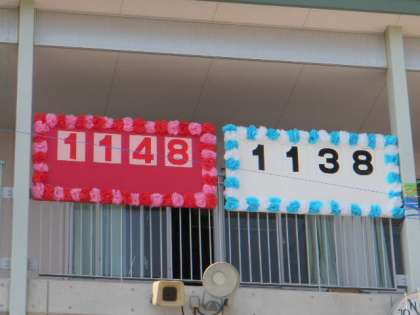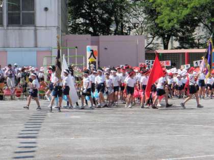 創立60周年記念運動会は、素晴らしい晴天に恵まれ、大きなけがもなく無事終えることができました。結果は、昨年の赤10点差優勝に続き、再び赤が10点差で優勝しましたが、得点経過を見ますと、赤と白が逆転また逆転という様相でした。結果はさておき、どの子も全力で徒競争、団体競技、団体演技に臨み、必死に頑張る表情がとてもよかったです。来週から運動会の一日を特集で掲載していきますので、お楽しみに!