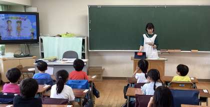 読み聞かせボランティアの方による本を楽しみました。じっと耳を傾け、挿絵に釘付けになりながら本の世界に浸っているようでした。また、来週から水泳が始まることもあり、養護教諭からプライベートゾーンについての話を聞きました。