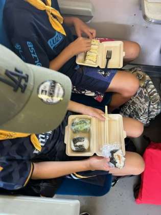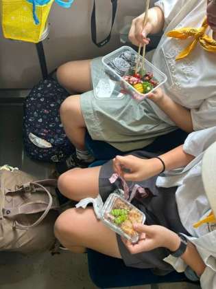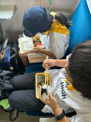 SLに乗りながらお弁当を食べています。ちょっとした昭和気分を味わっています。みんな元気です。