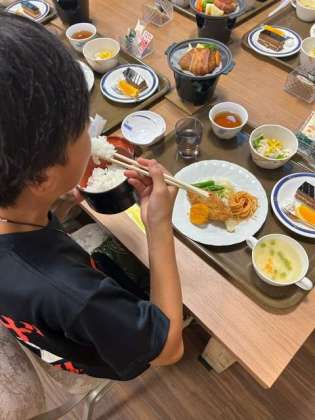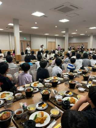二日目の夕食です。ハイキングで体を使い、お腹が空いたことでしょう。美味しそうに食べています。