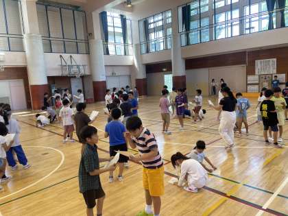 「夏休みラジオ体操に行きましたか?」「スイカ食べた?」と、クラスを超えて楽しそうに交流する姿がたくさん見られました。