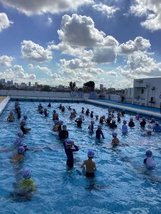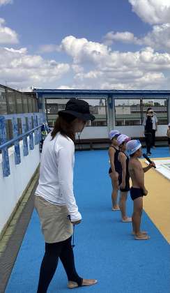 本日9月10日、プール日和の中、検定を行いました。代表の言葉を述べたクラス児童からは、いつの間にか浮くことができるようになったことが嬉しい。もっと泳げるようになりたい。楽しかったとの発表がありました。入水をはじめとする安全上のルールを身につけ今年の水泳が終わりました。