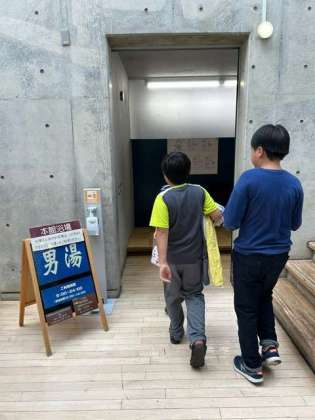 入浴の時間です。ハイキングとマスつかみで汗をいっぱいかいた体をゆったりとした温泉の湯船がきれいに温めてくれるでしょう。