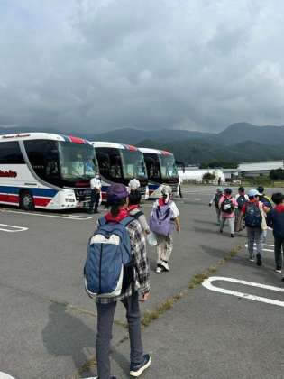 5年生を乗せたバスは、13時24分に田園プラザを出発しました。今後主要通過地点をこのホームページでお知らせします。また学校に近づきましたら、すぐーるでもお知らせします。