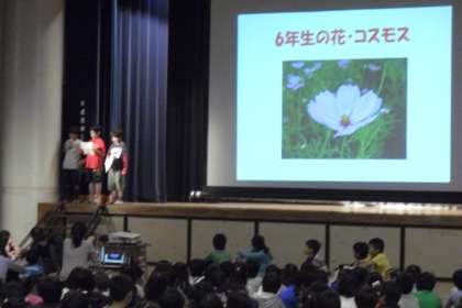 学校公開週間最終日、児童集会は、理科・栽培委員会の発表を行いました。