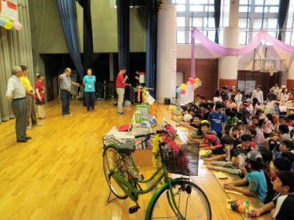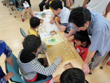 多目的室では、赤堤将棋クラブの体験コーナーに親子で参加している人がたくさんいました。また、14時30分から、子どもたちが楽しみにしている大抽選会が体育館で行われました。昨年も雨でしたが、昨年より多くの皆さんが参加してくださったように感じました。