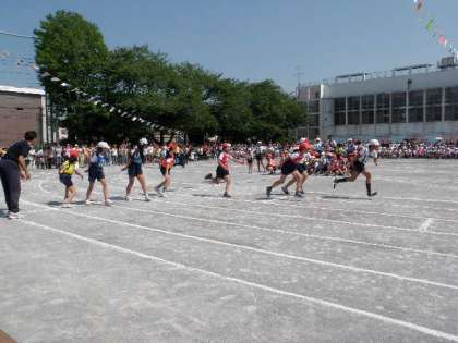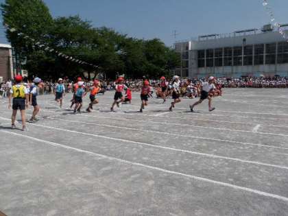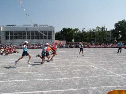 プログラムNo.23、5・6年生による高学年リレーです。さすが高学年。バトンパスがスピードに乗って行われていました。先生方の指導の成果です。