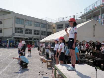 閉会式での「児童代表の言葉」の様子です。小学校生活最後の運動会。6年生としてやり終えた喜び、感謝の気持ちが言葉の端端に表れていました。6年生は前日から運動会の準備、当日は5年生と一緒に各係で陰から支えてくれました。今年は創立60周年です。これからも赤堤小学校のリーダーとして、他学年をリードしてほしいと思います。