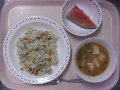 <えびチャーハン・麻婆汁・すいか・牛乳>