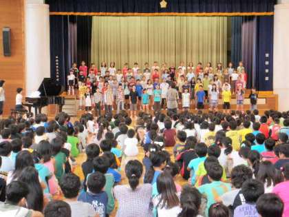 今日の音楽朝会は、NHK全国学校音楽コンクール・東京都コンクール予選に参加する合唱団の演奏を全校児童で聴きました。課題曲「希望の光」、自由曲「争い」の澄んだ歌声に子どもたちは大きな拍手を送っていました。この後の練習にますます熱が入り、本番が楽しみです。