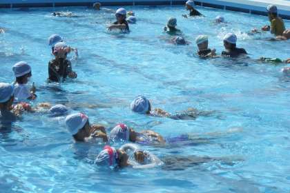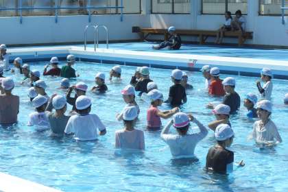 万が一、洋服を着たまま、水に入ることが生じても、あわてずに対応できるようことをねらいとしています。