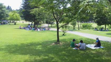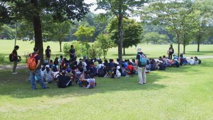 杉並木公園から30分歩き、皆元気にだいや川公園に着きました。これから1時間かけてゆっくり昼食です。トノサマガエルやニイニイゼミもたくさんいます。