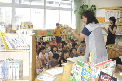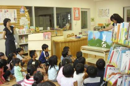 大型絵本の読み聞かせ、エプロンシアターなど、様々な形態でお話を楽しみました。