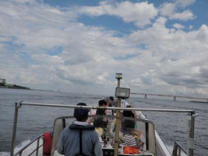 当日は9時に「大森海苔のふるさと館」に集合し、館内見学の後、船に乗って羽田飛行場沖へ向かいました。途中、雨に見舞われ船に乗りながら橋の下で1時間30分ぐらい雨宿りをしました。その後、改めて羽田飛行場沖に向かい、潮干狩りをしたり、離着陸する飛行機を間近で見たりしました。雨上がりなので、スカイツリー、ゲートブリッジ、ディズニーランド、幕張のビル群もよく見え、とても清々しい船旅でした。