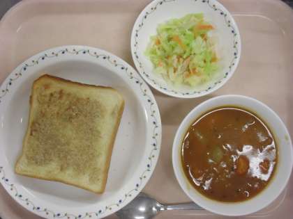 <セサミトースト・ビーンズシチュー・キャベツサラダ・牛乳>