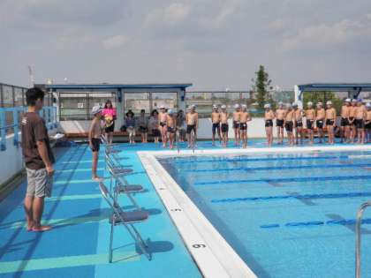 小学校水泳の集大成、6年水泳記録会が行われました。どの子も自分自身の持っている力を最大限に出し、自己新記録を目指しました。たくさんの保護者の皆様の応援もあり、5つの赤小レコードが出ました。赤小レコードは、男子100m自由形、女子100m自由形、男子100m平泳ぎ、男子25m平泳ぎ、男子200mリレー(50m×4)で記録されました。